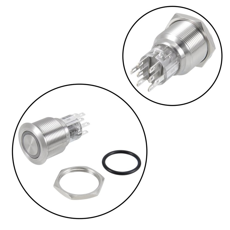 22mm Metal Düğme Kapatma,Açma,Aydınlatma, Nokta LED, Anlık Fonksiyon, 1NO1NC, 5 Pin